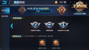 比如,贵族专属语音包、专属头像框、个性等,都能让你在游戏中与众不同。此外,贵族玩家还可以享受专属的排位赛房间、专属的战队频道等,让你在游戏中拥有更多专属特权。